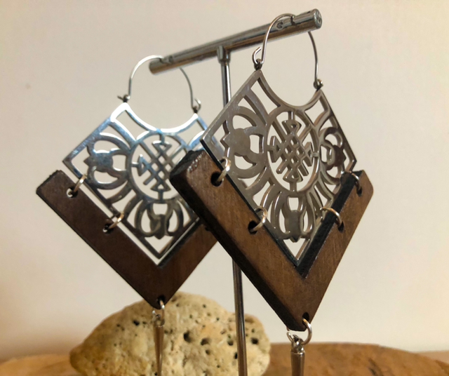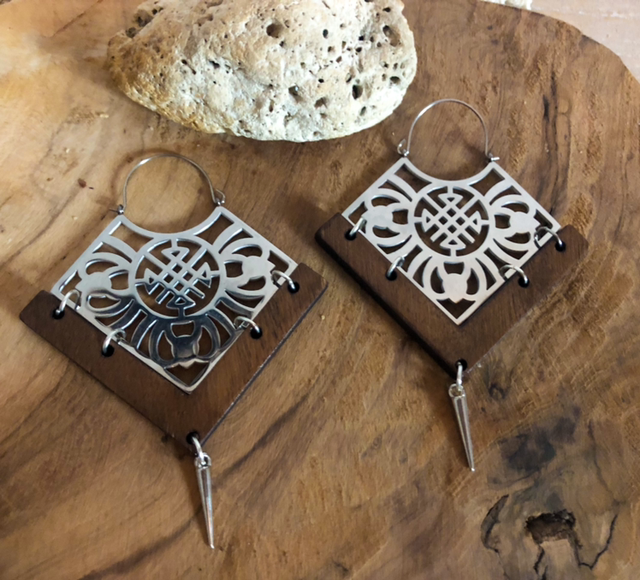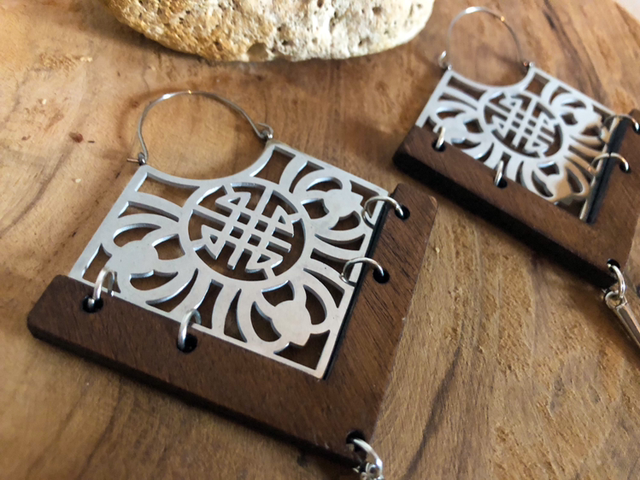 • Pendentif en bois: design entièrement dessiné par mes soins (tous droits réservés) Découpé à la machine laser.