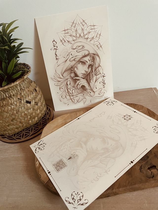Déclinée en carte postale, cette œuvre devient un objet à part entière : à offrir, à écrire, à afficher ou à conserver comme un rappel discret de cette énergie sensible et puissante.