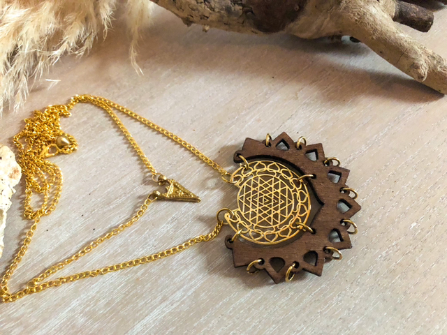 • Pendentif en bois: design entièrement dessiné par mes soins (tous droits réservés) découpé à la machine laser.