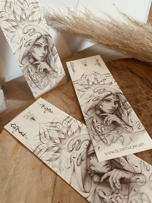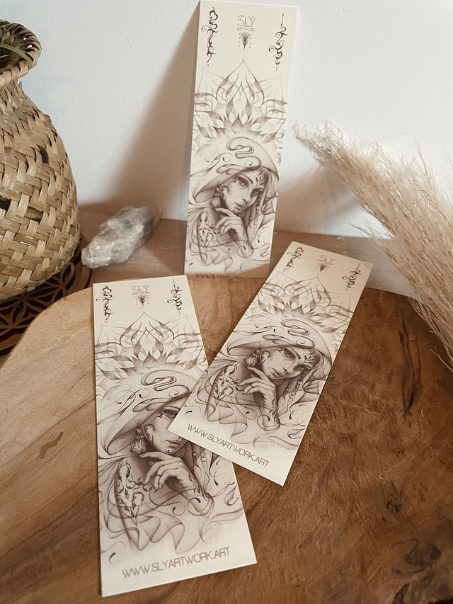 Le marque-page Asyah est une reproduction d’une de mes œuvres originales représentant la déesse Asyah, figure symbolique du féminin sacré.