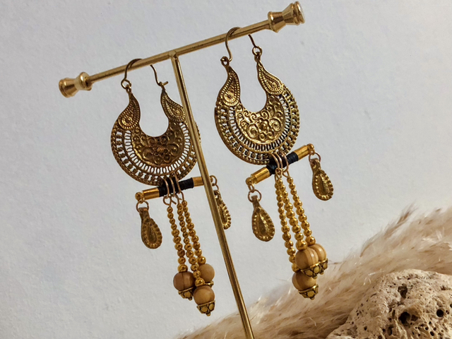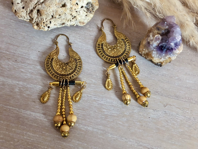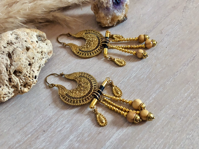 Boucles d'oreilles noires dorées créoles ethniques festival
