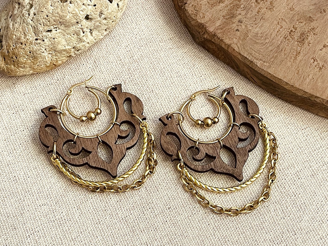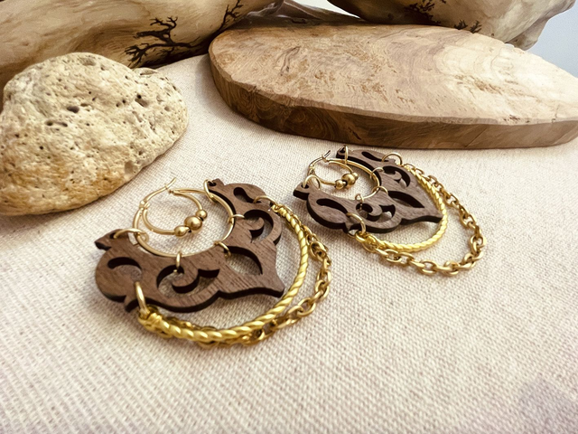 • Boucles d'oreilles en laiton, attache en acier inoxydable.